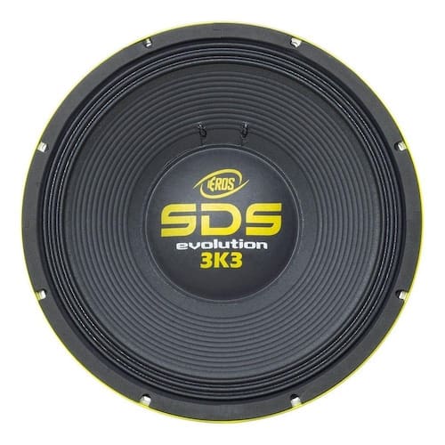 O Alto-falante Eros E-15 SDS 3k3 Evolution de 15 polegadas, foi projetado para reproduzir subgraves e graves mais firmes e com baixa distorção. Possui 1.650 Watts Rms, e possui novo design. A Linha Evolution vem com novo desenho de borda com tecido mais grosso e tratamento especial, permitindo maior excursão, traz novo cone prensado e com fibras longas em formato reto, proporcionando maior rigidez e SPL. Especificações Técnicas: • Diâmetro: 15 Polegadas• Potência Nominal: 1650 Watts Rms• Potência Musical: 3300 Watts• Impedância: 4 Ohms• Bobina: Simples• Resposta de Frequência: 39 a 1.420Hz• Sensibilidade (@ 1W, 1m) Free Air: 95,18dB• RE: 2,7 Ohms/Vcc• Área do Cone: 0,085 Sq.m• Frequência de Ressonância: 50,384Hz• Volume Equivalente: 66,4L• Qms: 14,112• Qes: 0,410• Qts: 0,399• Produto BL: 18,040TM• NO (referencial de Eficiência): 2%• CMS: 63,882uM/N• MMS: 156,2g• MMD: 141,817g• Xmax: ± 11,6mm• Densidade do Fluxo no GAP: 10.500 Gauss• Material do Ferrite: Bário• Forma da Bobina: FIBERGLASS• Material do Fio da Bobina: Cobre• Carcaça: Alumínio Conteúdo da Embalagem: • 01 Subwoofer 15 Eros E15 SDS 3K3 1650 Watts Rms 4 Ohms• Manual e Certificado de Garantia Importante:• Garantia de 273 dias.