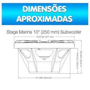 O subwoofer JBL Stage Marine de 10" Polegadas está sempre pronto para novas aventuras ao ar livre. Ele reproduz aquela sonoridade que consagrou a marca JBL, dando mais vida ao som. Desenvolvido para suportar o som, sal, maresia e água do mar, o JBL Stage Marine possui estrutura com motor vedado, carcaça resistente de polímero à prova de UV e guarnições de borracha.