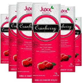 Suco De Cramberry Juxx 1 Litro (6 Unidades) Produzido sem corantes, conservantes ou aromatizantes artificiais, a bebida de Cranberry Juxx é um suco funcional, enriquecido com vitamina C, e que possui selos de aprovação da Sociedade Brasileira de Urologia, e do Kosher, um dos mais rígidos do mundo. Ingredientes Água, açúcar, suco concentrado de cranberry, antioxidante ácido ascórbico (vitamina c). A versão zero adição de açúcar é adoçada com sucralose. A versão com morango possui aroma natural de morango. Índice orac de 3.600 µte (micromol troloxequivalent)