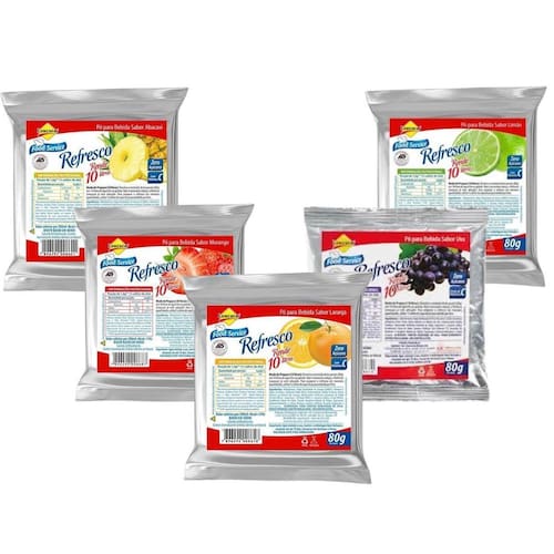 - Sabores: abacaxi, laranja, morango, uva, limão