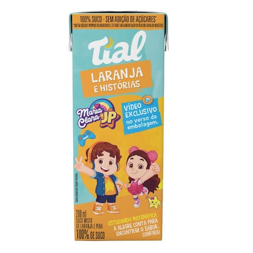 Suco Tial 100% Laranja e Historias Ingredientes Suco de laranja reconstituído (100%), aroma natural, vitamina C e acidulante ácido cítrico. Validade 12 meses Conservação Após aberto, manter refrigerad