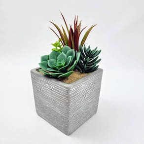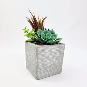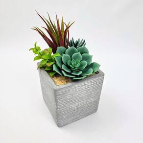 Cada suculenta neste arranjo é cuidadosamente selecionada para garantir sua saúde e vitalidade, proporcionando um toque de natureza que transforma instantaneamente a atmosfera de qualquer espaço. O vaso cinza complementa perfeitamente as cores das suculentas, adicionando um toque de modernidade e sofisticação.