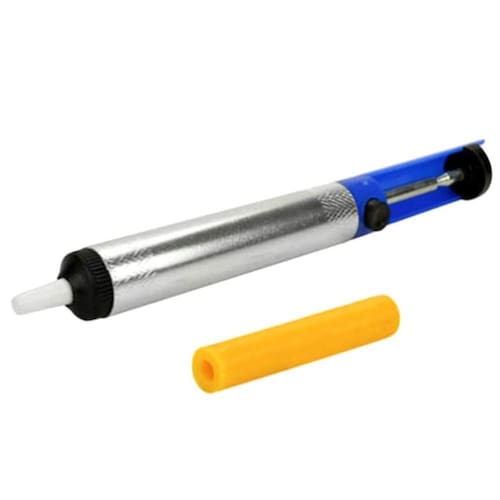 O sugador de solda é um equipamento para sugar a solda de placas e componentes eletrônicos. Trabalha em parceria com o ferro de solda, que aquece e derrete o estanho. Este sugador tem corpo de alumínio e um bom poder de sucção, com acesso fácil ao seu reservatório para limpeza. Modo de usar: 1 - Primeiro encoste a ponta do ferro de solda no terminal do componente e derreta a solda 2 - Com o auxilio do sugador de solda , use-o para sugar a solda. Você deve -lo posicionando seu acionador para baixo 3 - Coloque o bico do sugador contra a solda ainda derretida Você deve repetir o processo 1 a 4 até que toda solda seja sugada. Um facilitador para sugar melhor a solda é soldar o componente novamente para misturar a nova solda com a antiga, facilitando o derretimento e a sucção da solda. Marca: Não Informado