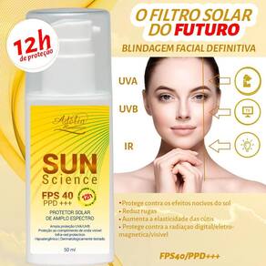 O protetor solar de amplo espectro Sun Science FPS40/PPD+++ apresenta em sua composição lisados de leveduras biotecnológicas, enriquecidas com ozônio natural, protegendo a pele por 12 horas, reduzindo rugas, sulcos superficiais e microdanos; aumentando a elasticidade da cútis e seu efeito barreira, melhorando a hidratação, incluindo ação detoxificante profunda.