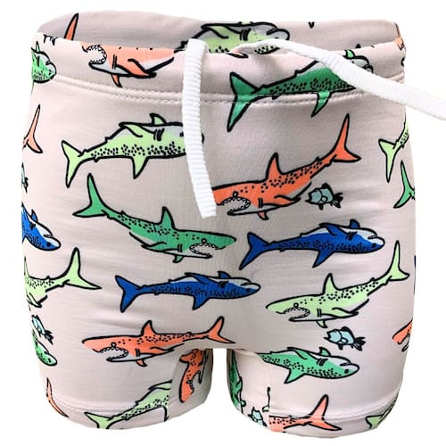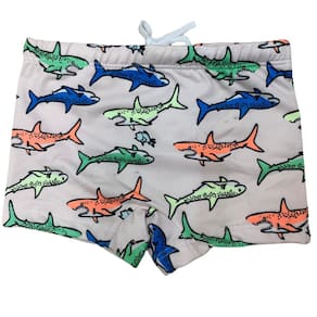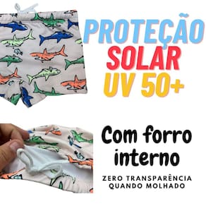 Sunga Infantil Boxer Proteção Solar Uv Tubarão Praia Piscina Natação Juvenil Baby Kids Filtro Fps50 - 1 - Branco