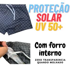 Sunga Infantil Juvenil Xadrez Proteção Solar UV50 Praia Sol - Preto - 4