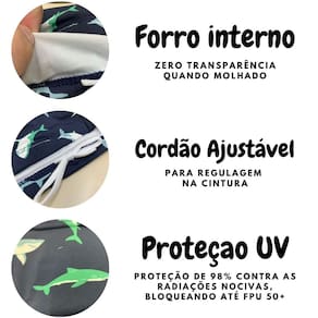 Sunga Infantil Natação Tutuba Tubarão Proteção UV Filtro Solar Praia Piscina Banho - Azul Bebê - 10 anos