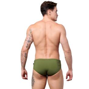 A sunga foi desenvolvida em tecido FLUITY feito com poliamida biodegradável, tem um toque suave no contato junto ao corpo, oferecendo outros atributos como: