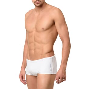 Sunga Calvin Klein Swimwear modelo Trunk fabricado em tecido com maior resistência ao cloro, permitindo maior durabilidade e melhor ajuste ao corpo. Modelo liso com silk da marca aplicado na lateral. Possui cordão interno personalizado e forro preto em todo o produto. Altura lateral aproximada de 16 cm a 18 cm.