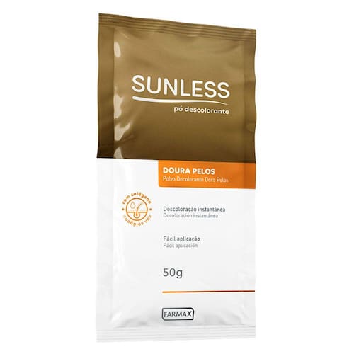 Sunless Doura Pelos Pó Descolorante 50g - Combinado a uma loção cremosa, o pó descolorante acelera o clareamento dos pelos dos braços, pernas e barriga deixando-os dourados e com brilho - Descoloração instantânea - Fácil aplicação.
