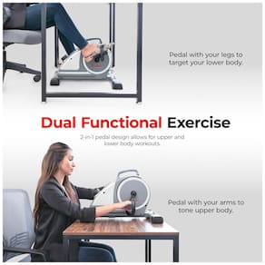 MONITOR DIGITAL Fique por dentro de suas metas de condicionamento físico e progresso. O monitor digital rastreia e exibe tempo, velocidade, distância e calorias queimadas inclui uma função de varredura para alternar entre todas as métricas. RESISTENTE A ESCORREGAMENTO As ventosas de borracha localizadas abaixo dos estabilizadores fornecem um recurso antiderrapante, para que você possa manter o foco em seus treinos. MAGNÉTICO 8 níveis de resistência magnética fornecem variação aos seus exercícios para que você possa alternar seus treinos sob demanda. DUPLA FUNÇÃO Pedale com os pés ou com as mãos. Alcançar um treino de corpo inteiro é simples, divertido e eficaz. ALÇA DE TRANSPORTE A alça de transporte permite uma portabilidade rápida e fácil. Levante o em sua mesa para uma sessão rápida de pedalar com a mão na parte superior do corpo ou mova o pela sua casa ou escritório Marca: Não Informado