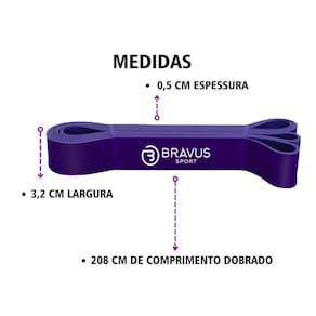 Super Band Bravus Sport Forte Borracha Barra Fixa Elástico Extensor Super Band Forte Roxa 3.2cm de largura Força e robustez, essa é a Super Band Forte da Bravus Sport Perfeita para quem precisa melhorar o desempenho na barra fixa, seja iniciante ou intemediário no pull up ou muscle up, a Super Band Forte vai te levar para outro nível na barra fixa. A Super Band Forte apresenta um design de alta qualidade e é feita com borracha espessa e durável. Ela tem as seguintes especificações: Super Band Elástico Extensor Borracha treinamento funcional - Nível Forte Nível: Intermediário - Avançado Resistência: de 28kg à 39kg - Média 35kg Beneficios: Fortalecimento e Definição Muscular Dimensões: 3,2 cm largura x 0,5 espessura x 208 comprimento dobrado Cor: Roxa Material : Látex Natural Uso e Benefícios: Além da barra fixa, a Super Band também é perfeita para ajudar você a atingir grupos musculares específicos - Abdômen core , Membros superiores: costas, pernas, peito, ombros, bíceps e tríceps e Membros Inferiores: Coxas, pernas e Glúteos. Para flexões e flexões assistidas, basta passar a faixa por cima de uma barra fixa e você terá um apoio para se exercitar e evoluir na execução do exercício. A super band também funciona muito bem para treinamentos de velocidade e agilidade, força, treinamento funcional, cruzado, Artes Marciais Mistas MMA e muito mais. Leve o seu treino para o próximo nível com a Super Band. Assista um de nossos vídeos e descubra como usar as super bands e potencializar os efeitos do seu treino. Trabalho muscular - Roxa: principalmente nos músculos maiores como os dos membros inferiores Barra Fixa - roxa - Assistência em torno de 30% - Para iniciantes, que precisam de mais assistência para executar os exercícios na barra e progredir com mais rapidez. Marca: Não Informado