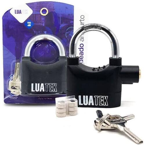 Super cadeado com alarme sonoro antifurto moto bike casa 110db bk-bl16 3 chaves Cadeado alarme sensor sonoro antifurto para ajudar a prevenir de roubos. Perfeito para uso em portões, garagens, galpões, motos, bicicletas, portas e portões, armários, e entre outros, com alarme de 110db que dispara ao menor movimento ou impacto. Cadeado com alarme sensor sonoro, manilha em aço fundido de 10 mm e corpo em liga de alumínio para duplicar a sua segurança. Multifunção: pode ser com ou sem função de alarme. É só retirar a manilha, virar e colocar novamente no corpo. Informações técnicas: Material: manilha de aço com 10mm Volume som: 110db pode ser com ou sem alarme Resistente a água e ao tempo Corpo em liga de alumínio: não enferruja Inclui 3 chaves de corte a laser: não pode ser copiada Inclui baterias lr44: 2 kit com 6 cada Tamanho total do cadeado: 13cm x 9.5cm x 3cm x 1cm Tamanho da fechadura: 8.5cm x 6.5cm x 3cm x 1cm Como funciona: 1 toque curto para armar 3 toques curtos para informar que irá disparar o alarme se não parar de mexer ou forçar o cadeado vai disparar a sirene de 110 decibéis. O alarme desarma sozinho, caso não mexam mais com o cadeado. Se o intruso continuar mexendo no cadeado ele continua disparando. Alarme de 2 tons bi p de aviso e sirene de 110 db. Não depende de instalação pois funciona com baterias - acompanha 6 baterias reserva e 6 baterias já instaladas no produto baterias de longa duração. Lembrando o cadeado vai desarmado, para ativar basta retirar a alça do cadeado e inverter a posição da haste Características destacadas: 1. Prova d'água e durável: Construído com materiais de alta qualidade, este cadeado é à prova d'água, garantindo a durabilidade e resistência necessárias para enfrentar as condições adversas do ambiente externo. Proteja seus bens valiosos sem se preocupar com as mudanças climáticas. 2. Alarme sonoro anti-furto: O destaque deste cadeado é o alarme sonoro embutido que dispara em caso de movimentos suspeitos ou tentativas de violação. O som alto e penetrante serve como um forte dissuasor contra ladrões, alertando imediatamente sobre qualquer tentativa de furto. 3. Trava de alta segurança: Equipado com uma trava de alta segurança, este cadeado oferece uma barreira resistente contra tentativas de arrombamento. Sua construção robusta proporciona tranquilidade, sabendo que seus pertences estão protegidos de forma eficaz. 4. Versatilidade de uso: Ideal para motos, bikes, motocicletas e até mesmo para uso em comércios, este cadeado oferece versatilidade em sua aplicação. Proteja seus ativos de maneira eficiente, independentemente do contexto de uso. 5. Fácil de usar e transportar: Com um design prático, o cadeado é fácil de usar e transportar. Sua portabilidade torna-o uma escolha conveniente para quem está sempre em movimento, garantindo segurança onde quer que você vá. 6. Segurança reforçada para a paz de espírito: Além de ser um impedimento físico, o alarme sonoro adiciona uma camada adicional de segurança, proporcionando tranquilidade quando você precisa deixar seus pertences sem vigilância. Informações técnicas: - marca: luatek - modelo: lk-bl16 - volume som: 110db - pode ser com ou sem alarme - resistente a água e ao tempo - detecta choque pancada e movimento - manilha de aço com 10mm - corpo em liga de alumínio não enferruja - inclui baterias lr44: 2 kit com 3 cada - inclui 3 chaves de corte a laser não pode ser copiada - tamanho total do produto: 10cm x 9.5cm x 3cm x 1cm - tamanho da fechadura: 6.5cm x 5.5cm x 1cm - peso: 273 gramas Conteúdo: 01 - cadeado alarme lk-bl16 03 - chaves 06 - baterias lr44