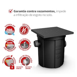 💎 VANTAGENS DO PRODUTO • Fácil Manutenção: Acompanha um cesto de limpeza removível que possui pega ergonômica para um descarte mais fácil e higiênico. • Segurança e Vedação: ? Tampa Ultra Resistente: Suporta até 200 kg, ideal para áreas de passagem. ? Sistema de Fixação sem Parafusos: Garante vedação total, evitando a entrada de insetos e isolando o mau cheiro. ? Garantia Contra Vazamentos: Impede a infiltração de esgoto no solo. • Fácil Instalação e Acabamento: Formato Quadrado que facilita o acabamento do piso e o assentamento no local. • Limpeza Interna Simplificada: Caixa com acabamento liso que facilita a limpeza e sifão removível. ------------------------------------------------------------- PRODUTO COMPATÍVEL COM PROLONGADOR: