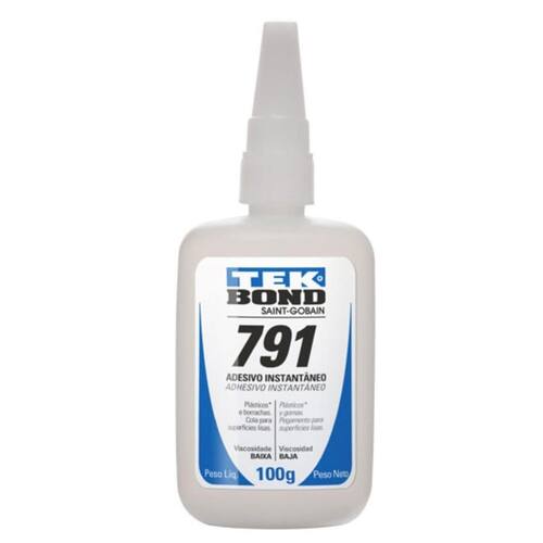 O produto é ideal para plásticos, como PVC, acrílico e policarbonato. É indicado aos demais substratos como madeira, couro, metais, entre outros, com alto desempenho. Especificações: - Marca: Tek Bond - Cód. Fornecedor: 20561002704 - Quantidade: 1 unidade - Viscosidade cP : 10 - 30 - Temperatura de Trabalho ºC : -55 - 80 - Preenchimento de Folgas mm : Até 0,05 - Resistência ao Cisalhamento Aço x Aço : 100Kgf/cm2 - É um produto monocomponente e não requer mistura - O processo de cura inicia-se quando uma fina camada de adesivo é aplicada entre as superfícies, entrando em contato com a umidade do ar atmosférico - Peso: 100g - Garantia: 90 dias pelo fabricante