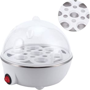Descrição Cozinha até 7 ovos - gema mole, macia ou dura Também faz salsicha, legumes e tudo a vapor. Características gerais: Design sofisticado e inovador; Basta colocar água e ligar o botão; Cozinha até 7 ovos ao mesmo tempo; Permite escolher o ponto de cozimento mole, macio ou bem cozido ; O ovo não trepida e não racha; Ultra performance, com 350w de potência; Tempo médio de preparo de 3 a 10 minutos conforme o ponto; Automático, a luz apaga quando o cozimento está completo; Luz indicadora de funcionamento; Pode ser levado a mesa; Excelente para fazer ovos, omeletes, salsicha, legumes, entre outros; Fácil de lavar e prático para guardar; Especificações: Voltagem 220v Potência: 350w Frequência: 60hz Dimensão l x a x p : 16,0 x 16,0 x 16,0cm Peso: 550 g Itens inclusos: Cozedor, e copo dosador Manual do usuário Instruções de uso: