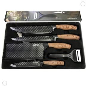 Super Jogo De Facas Titanium 6 Pçs Premium Gourmet Inox Churrasco Jogo Kit Super Facas Cozinha Churrasco Chef Cerâmica Inox Preto Aço 304