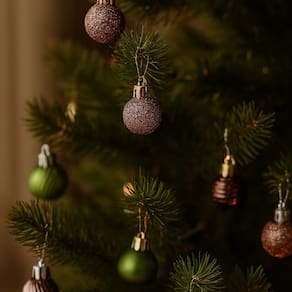 Cada bola tem 3cm de diâmetro, perfeitas para árvores menores ou para complementar a decoração com equilíbrio e estilo. O grande diferencial é a embalagem em formato de pinheiro, que além de prática, já serve como item decorativo ou ótima opção para presentear.