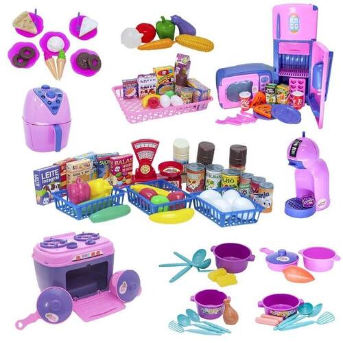 Super kit cozinha infantil eletro mercado comida fogão 108pç