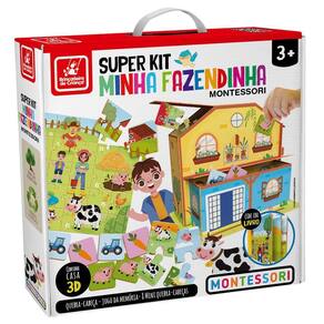 Super Kit Jogos Minha Fazendinha Montessori Super Kit Minha Fazendinha Montessori Ref.: 3416 com esse super kit de jogos as crianças terão diversão de sobra. Este combo é composto por um quebra-cabeça de 35 peças, uma casa de campo 3D com compartimentos para guardar as peças , oito mini quebra-cabeças, um jogo da memória com 12 pres, 4 personagens com bases e um livro. São jogos clássicos com a temática de fazenda, sucesso garantido com a criançadaEste brinquedo visa trabalhar a coordenação motora e assimilação de idéias. - Marca: Brincadeira de Criança- Dimensões: 38 x 37 x 8 cm embalagem - Contém: : 1 Fazenda montável, 1 jogo da memória, 8 mini quebra-cabeças, 4 personagens com bases plásticas, 1 quebra-cabeças com 35 peças, 1 livro em madeira e 1 manual de instruções- Faixa Etária: indicado para crianças à partir de 3 anos- EAN: 7898565513416- Certificado pelo INMETRO Registro 006331/2021 OCP 0133Homologação Inmetro: CE-BRI/ICEPEX-N 01414-52-17