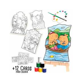 O kit é um mini ateliê pronto para usar, contendo 12 cards exclusivos com o tema capivara para colorir, 4 telas para as primeiras obras de arte, 6 potes de tinta guache atóxica com cores vibrantes, 1 pincel ideal para mãozinhas pequenas, 1 godê (paleta) para misturar as tintas e um prático cavalete para apoiar as criações. É o presente ideal para incentivar momentos de lazer criativo e educativo longe das telas, permitindo que os pequenos artistas desenvolvam a imaginação e a expressão, criando suas próprias obras-primas com o charme contagiante das capivaras Cozy e Comfy.