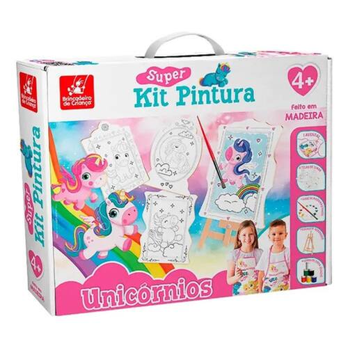 ESTIMULE OS DOTES ARTÍSTICOS DOS SEU FILHOS COM O SUPER KIT PINTURA UNICÓRNIO,SÃO 4 TELAS PARA SE DIVERTIR SENDO O ARTISTA DO SEU PRÓPRIO MUNDO MÁGICO.CONTÉM1 AVENTAL1 GODÊ E PINCEL1 CAVALETE4 TELAS DE 21 X 30 CM6 POTES DE TINHA GUACHE* FEITO EM MADEIRA