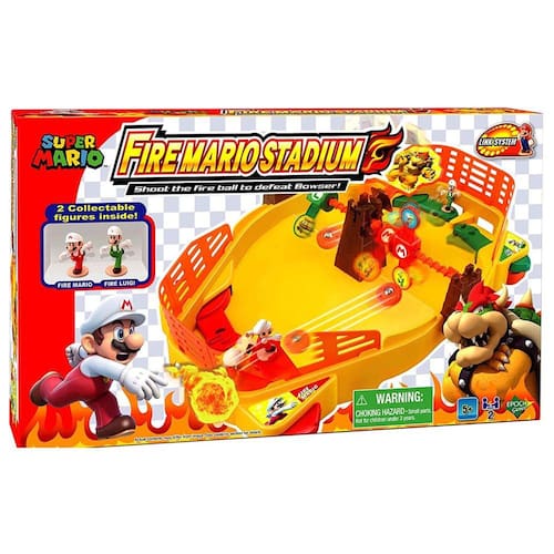 Super Mario Fireball Stadium da Epoch, jogo de ação multijogador para crianças a partir de 5 anos.Inclui base de jogo com Bowser's Tower, alvos de dois lados e bonecos colecionáveis de Super Mario e Luigi.Use as duas raquetes para atirar bolas de fogo e derrotar Bowser! Dispare nos alvos do seu personagem para aproximá-los de Bowser e ganhar! Jogue defesa atirando no alvo do seu oponente para enviá-los de volta para começar.Promove diversão independente e sem tela.PEÇAS PEQUENAS: Adequado para crianças a partir de 5 anos.Especificações:Fabricante: EpochLinha: Super MarioRef.: 7388Cód. Barras: 5054131073889Certificação: 008015/2021Não recomendável para menores de 3 anos por conter peças pequenas que podem ser engolidas.Dimensões da embalagem (AxLxC): 30 x 51 x 8 cmPeso: 600gGarantia do vendedor: 7 diasGarantia do fabricante: 3 meses