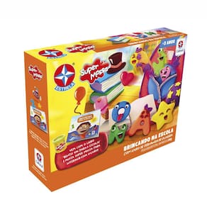 A criançada vai dar aula nessa brincadeira! A Super Massa Estrela Brincando na Escola vem com moldes de números, 26 formas com todas as letras do alfabeto, 3 formas com 2 figuras geométricas cada e uma régua repleta de figuras divertidas para as crianças se divertirem e aprenderem! Acompanha 4 potes de Super Massa de 50g cada, além de um livro interativo com o tema da embalagem.Brincar e aprenderA brincadeira é fundamental para o desenvolvimento das crianças. Dessa forma, ela aprende a se comunicar, desenvolve a criatividade, imaginação, além de diversas habilidades. É uma importante porta de entrada para a descoberta de sensações e sentimentos, e os brinquedos, como a Super Massa Estrela Brincando na Escola com Livro, tem um papel significativo nesse processo.