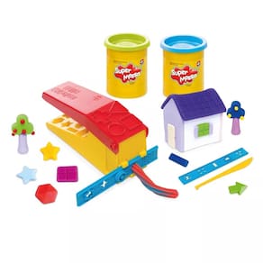 É a fábrica de alegria! Vem com uma prensa com 14 moldes diferentes e acompanha 2 réguas com mais de 10 aberturas diferentes para a criança se divertir! Acompanha 2 potes de 140g cada.