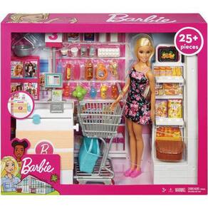 A boneca Barbie adora ajudar nas compras e tem todos os itens para deixar as compras bem mais divertidas, ajude a Barbie a pegar o carrinho de compras ele realmente rola com essa linda mercearia as crianças terá tantas comidas para comprar e diversa refeições para cozinhar