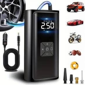 Super Mini Compressor Digital Bomba De Encher Pneus Bola Portátil Para Motocicletas Carro Bicicleta Preto Com Calibrador Super Compressor Calibrador Bomba de Encher Pneu Portátil sem fio - Liberdade e Conveniência em Suas Mãos Diferenciais - Alta Potência, maior durabilidade de bateria, lanterna, luz de advertência, luz de sinalização. Com o Compressor Portátil, você está no controle total da pressão dos seus pneus e infláveis onde quer que vá. Com sua bateria interna de 4500mAh recarregável, este compressor oferece potência sem a necessidade de cabos incômodos ou conexões complicadas. Desfrute de mobilidade absoluta, seja em emergências na estrada, no trajeto diário ou em aventuras ao ar livre. Sua impressionante tecnologia sem fio permite inflar pneus, bolas, colchões de ar e muito mais, sem a necessidade de conexão ao acendedor de ou tomada. Compacto e leve, o tamanho equivalente a um smartphone de tela de 4,7 polegadas, com apenas 490 gramas, este compressor é perfeito para caber no porta-luvas, na moto ou na sua mochila, tornando-se um fiel companheiro em qualquer situação. Você terá total visibilidade e controle da pressão com o visor digital integrado, garantindo precisão e facilidade de uso. Além disso, a pequena lanterna integrada oferece iluminação em ambientes de baixa luz, proporcionando ainda mais praticidade. Recarregar é uma tarefa rápida e eficiente, graças à interface de carregamento via cabo USB Tipo-C, incluso no kit. O Compressor Portátil acompanha uma variedade de bicos, incluindo um bico para pneu com rosca segura, bico para bola e até mesmo bicos para infláveis. Você estará sempre preparado para qualquer situação. Especificações: Material: ABS resistente e durável. Potência: 120W para inflação rápida. Fluxo de ar: 25L/min para resultados rápidos. Pressão de inflação: 0-150PSI Unidade: PSI/BAR/KPA/KG-CM2 Interface de carregamento via cabo USB Tipo-C. Cabo para carregamento não acompanha a fonte Cabo auxiliar para alimentação veicular