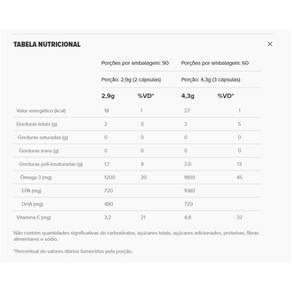 Ingredientes Óleo de peixe ômega-3 TG e D-alfa-tocoferol. Composição da cápsula: gelatina, água purificada e umectante glicerina.