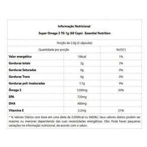 Super omega 3 tg 60 caps - nova embalagem - padrão: único Super ômega 3 tg - essential nutrition o que é super ômega 3 tg o ômega-3 é amplamente estudado pela ciência. Seu consumo auxilia na manutenção de níveis saudáveis de triglicerídeos desde que associado a uma alimentação equilibrada e hábitos de vida saudáveis. mas, para que possa levar somente benefícios ao organismo, sua concentração e pureza são essenciais. O super ômega 3 tg essential é obtido por processo patenteado de destilação molecular, que oferece alta concentração de epa e dha e padrões de pureza extremamente rígidos em relação aos metais pesados e demais contaminantes como pcbs, mercúrio e dioxinas. o que é tg quando o ômega-3 está na forma de triglicerídeos tg , ou seja, na mesma forma em que é encontrado na natureza, é mais fácil para o organismo reconhecer e absorver, proporcionando também mais conforto gástrico. 30% mais absorção. certificação ifos o international fish oil standards program ifos é referência mundial no controle de qualidade de suplementos de óleo de peixe ricos em ômega-3. Rígidos critérios avaliam a concentração de epa e dha e índices de acidez, oxidação, metais pesados e compostos orgânicos altamente tóxicos como dioxinas, pcbs e furanos. Super ômega 3 tg é certificado com a pontuação máxima de 5 estrelas. qual a diferença entre o super ômega 3 tg e dha tg essential tanto o super ômega 3 tg quanto o dha tg são suplementos fontes de ômega-3 da linha essential nutrition. Indicados para todas as fases da vida, apresentam excelência em qualidade, procedência e absorção. sua diferença está atrelada à concentração de epa e dha e consequentemente suas indicações também. O dha tg essential contém 500mg de dha e 100mg de epa por cápsula, enquanto o super ômega 3 tg essential contém 360mg de epa e 240mg de dha a cada cápsula de 1000mg ou 2 cápsulas de 500mg. a escolha por cada um deve ser avaliada de acordo com suas necessidades individuais. Peça orientação de um médico ou nutricionista. benefícios: - certificação 5 estrelas da ifos de excelência de qualidade que assegura a pureza do produto- maior nível de pureza;- alta concentração;- livre de metais e contaminantes;- evita a sensação de retrogosto;- óleo de peixe em triglicerídeos tg ;- forma de superior biodisponibilidade e absorção. Marca: Não Informado