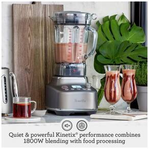 Apresentamos o Liquidificador Breville Super Q, um liquidificador de qualidade comercial super rápido, mais poderoso e mais personalizado. Com o motor mais potente, 5 programas com um toque e 12 configurações de velocidade, garante texturas suaves e macias com menos ruído graças à tecnologia de supressão de ruído.