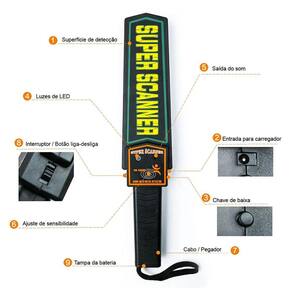 Super Scanner MD 3003B1 Detector de Metais Preto O Detector de Metais Portátil tipo - Super Scanner é a solução prática para reforçar a segurança em acessos e revistas pessoais. Leve e ergonômico, oferece alta sensibilidade para localizar desde pequenos objetos metálicos até peças maiores em pessoas, bolsas e mochilas - ideal para eventos, escolas, empresas, casas noturnas e portarias. Para usar, ligue o equipamento pelo botão ON/OFF, ajuste a sensibilidade conforme a necessidade e passe a superfície de detecção paralelamente ao corpo/objeto, a poucos centímetros de distância. Ao identificar metal, o aparelho alerta por som, luz LED e/ou vibração modo discreto . Recarregue pela entrada para carregador quando a indicação de bateria estiver baixa ou substitua a bateria 9V recarregável. Especificações Modelo: Super Scanner detector de metais ; Modos de alerta: Sonoro, Luminoso LED e Vibratório; Sensibilidade ajustável para metais pequenos e grandes; Controles: botão Liga/Desliga, chave de modo e regulagem de sensibilidade; Indicadores: LEDs de status e saída de som; Alimentação: 1 bateria 9V recarregável inclusa e porta para carregamento; Pegador com alça de pulso para manuseio seguro; Corpo em plástico ABS resistente; Uso indicado: revistas pessoais, inspeção de bolsas, malas e pacotes em entradas e controles de acesso. Itens Inclusos 1x Detector de Metais Portátil tipo - Super Scanner; 1x Bateria 9V recarregável; 1x Suporte para cinto. Marca: Não Informado Ean: 7896880105408