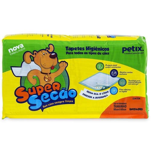 Super Secão Tapete Higiênico resolve o problema de mal cheiro de xixi de cachorro em sua casa. Possui Gel Super Absorvente, Ranhuras, Atrativo, Adesivo, Abas Laterais e Vedação Especial.