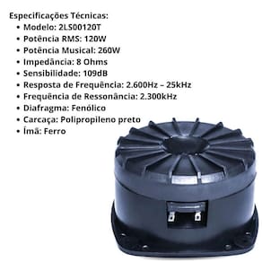 Super Tweeter Profissional para Som Automotivo 2LS00120T 120W RMS 8 OHMS Agudos de Alta Definição Sensibilidade 109DB