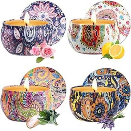 Super velas aromáticas perfumadas na lata decorada mandala importadas 125g