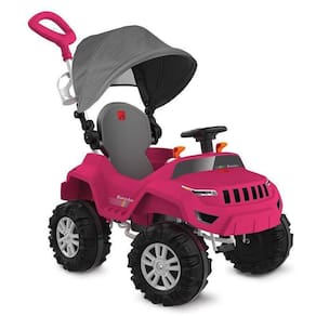 Superjipe reclinável com capota passeio & pedal (pink) 586 Superjipe reclinável com capota passeio & pedal (pink)Categoria:Carros a pedalLançamentosPasseio do bebêCod. referência: 586Cod. barras 7899091405862Descrição:Um produto com duas funções, prático e moderno para o adulto e divertido para as crianças!Função passeio: o adulto conduz o super jipe passeio e pedal como um carro de passeio.Função pedal: permite a criança brincar livremente como um carro a pedal. Basta remover o assoalho e a haste removível.Assoalho removível: converte rapidamente o brinquedo entre as funções passeio e pedal.Haste direcionável e removível.Capota articulável, retrátil e removível.Painel de atividades e volante com chip sonoro.Assento reclinável em 3 posições.Freio de segurança.Suporte para bolsa/ sacola (na alça da haste).Suporte para garrafa d'água, mamadeira ou squeeze (na haste).Cinto de segurança removível com prático sistema de abertura lateral.Rodas com anel antiderrapante: proporciona um deslocamento suave e sem ruído.Painel interativo. Idade: +12 meses.Peso máximo suportado: 25kg.Ce-bri/innac-00143-01 a.Dados técnicos manual do produtoProduto:Dimensões: (c,l,a) 127,0 x 61,5 x 98,0 cm Embalagem:Dimensões da caixa: (c,l,a) 92,5 x 57,0 x 62,5 cmQuantidade: 1
