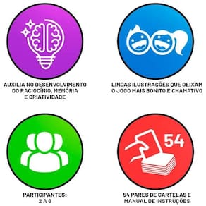 O Super Memória Figuras Infantis traz 54 cartelas com novas figuras, novo visual e agora novo tamanho de embalagem!