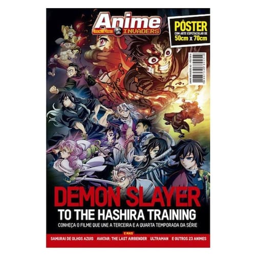 Edição especial posterzine da Anime Invaders com tudo sobre o filme que une a terceira e a quarta temporada série Demon Slayer. De um lado 12 páginas de reportagem sobre o universo dos animes, Catálogo Otaku e reviews das principais séries, animações e filmes do universo anime. Do outro lado, postêr com arte oficial de Demon Slayer: To The Hashira Training, em formato gigante, 50x70cm aberto, impresso em alta gramatura, para decorar seus ambientes, ou você colecionar!