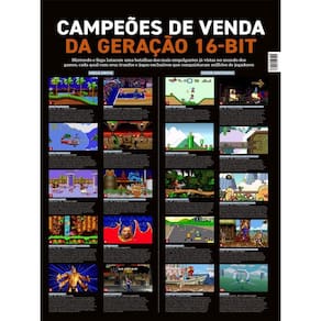 A clássica rivalidade Nintendo x Sega eternizada numa edição comemorativa única. Raio-X dos videogames, jogos mais vendidos, curiosidades históricas e mascotes, tudo com um poster em tamanho gigante 840 x 590 mm (A1) para guardar de recordação ou decorar.