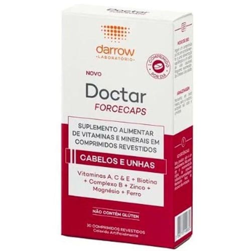 Suplemento Alimentar para Cabelos e Unhas Darrow Doctar Forcecaps 30cps Doctar Forcecaps suplemento oral antiqueda possui uma combinação única de ingredientes que previne e reduz a queda capilar, estimula o crescimento de novos fios e fortalece o cabelo, com eficácia clínica comprovada.