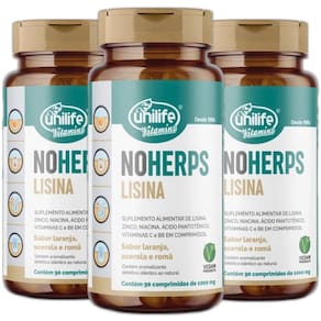 O zinco contribui para a manutenção de cabelo, da pele e das unhas. A niacina auxilia na manutenção de mucosas. O ácido pantotênico auxilia no metabolismo energético. A vitamina C auxilia na formação do colágeno. A Vitamina B6, C e Zinco auxiliam no funcionamento do sistema imune. Modo de ingestão: Sugere-se a ingestão de 1 comprimido 3 vezes ao dia. Ingerir com líquido. Ingredientes: Cloridrato de lisina, polpa de acerola, polpa de romã, bisglicinato de zinco, niacinamida, ácido ascórbico, pantotenato de cálcio, cloridrato de piridoxina, agente de massa: celulose microcristalina, aroma idêntico ao natural de laranja com acerola, lubrificantes: estearato de magnésio e dióxido de silício, acidulante: ácido cítrico e edulcorantes: sorbitol, sucralose, stévia e taumatina. Cada comprimido contém 500 mg de cloridrato de lisina. Livre de lactose. Não contém glúten. Produto autorizado para comercialização em todo território nacional através da RDC 240/2018 da ANVISA, AFE do MS 6.02234-1 Ean: 7905865305655