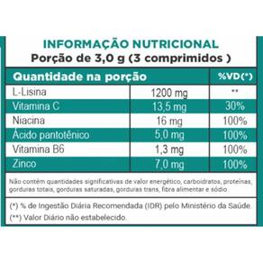 Suplemento Alimentar de Lisina, Zinco, Niacina, Ácido Pantotênico, Vitaminas C e B6 90 Comprimidos de 1000mg Kit com 3 unidades. A lisina é um aminoácido que pode ser utilizado no combate ao herpes. Sua função é inibir a ação da arginina, uma substância que atua a favor do herpes simples.