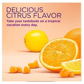 Deliciosas gomas cítricas tropicais são testadas em laboratório e contêm leite sem lactose, sem soja, sem glúten, sem trigo, sem fermento, sem peixe.