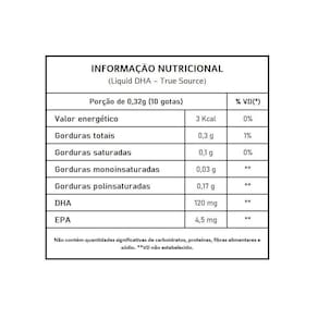 Ingredientes: Ácido docosahexaenoico dha obtido de óleo de alga schizochytrium sp, aromatizante natural, tocoferol e triglicerídeos de cadeia média tcm . Não contém glúten. Não contém lactose.