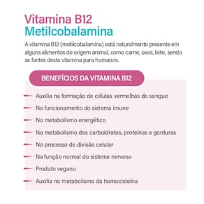 O Suplemento de Vitamina B12 foi desenvolvido para auxiliar na formação das células vermelhas do sangue, no funcionamento do sistema nervoso e na manutenção da saúde metabólica. A B12 na forma de metilcobalamina é altamente biodisponível, garantindo melhor absorção pelo organismo. Além disso, contribui para o metabolismo energético e para o fortalecimento do sistema imunológico. Ideal para quem busca mais disposição, foco mental e equilíbrio metabólico.