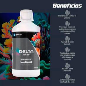 O delta reef é um suplemento para aquários marinhos a base de aminoácidos e ácidos orgânicos. Os aminoácidos são necessários para síntese de proteínas, o que é crucial para o crescimento, reparação de tecidos danificados e reprodução dos corais. Além disso, os aminoácidos também podem atuar como agentes antioxidantes, ajudando a proteger os corais contra danos causados pelo oxidativo e resistência a condições adversas. PRINCIPAIS CARACTERÍSTICAS: O produto contém carbono orgânico, uma fonte importante de energia e nutrientes que auxilia no processo de fotossíntese das algas zooxantelas, e também auxilia no crescimento de calcificação dos corais. Promove um crescimento saudável cores vibrantes e resistência a condições adversas. INSTRUÇÕES DE USO: Aplicar 10 gotas para cada 50 litros de água a cada 7 dias, ou 1 ml para cada 100 litros a cada 7 dias. EMBALAGEM: 1000 ml Marca: Não Informado