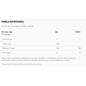 VIT C 4 Protect Essential é uma fórmula que combina ingredientes poderosos para cuidar de você. Suas cápsulas contêm vitamina C + zinco quelado + betaglucana de levedura + aminoácido L-lisina e oferecem doses efetivas com elevado poder de absorção. Auxiliam no funcionamento do sistema imune. - MODO DE USO Ingerir 3 cápsulas ao dia ou conforme prescrição de médico ou nutricionista. - Ingredientes Ácido ascórbico revestido vitamina C , cloridrato de L-lisina, betaglucana de levedura Saccharomyces cerevisiae , bisglicinato de zinco, estabilizante celulose microcristalina e antiumectante dióxido de silício. Composição da cápsula: gelatina, água purificada e corante inorgânico dióxido de titânio.